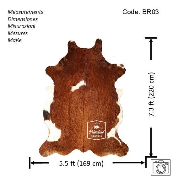 Description: - You will receive the exact cowhide rug shown in the pictures. - Size: Large(L). - Measurements: Length: 7.3 ft (220 cm) - Width:5.5 ft (169 cm) Please see the picture with the measurements. - Code: BR03 - Individually selected and inspected to meet our high quality standards. - Durable and long lasting item. - Authentic 100% natural cowhide rug. - Minimum...